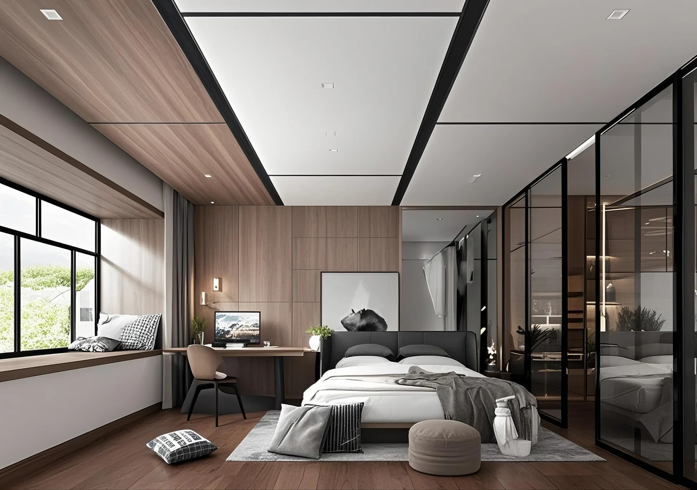 Available in a variety of wood grain, stone texture, and solid color finishes, the ceiling features a three-dimensional honeycomb surface with seamless joints, delivering a clean, modern, and upscale look—perfect for contemporary luxury interiors.